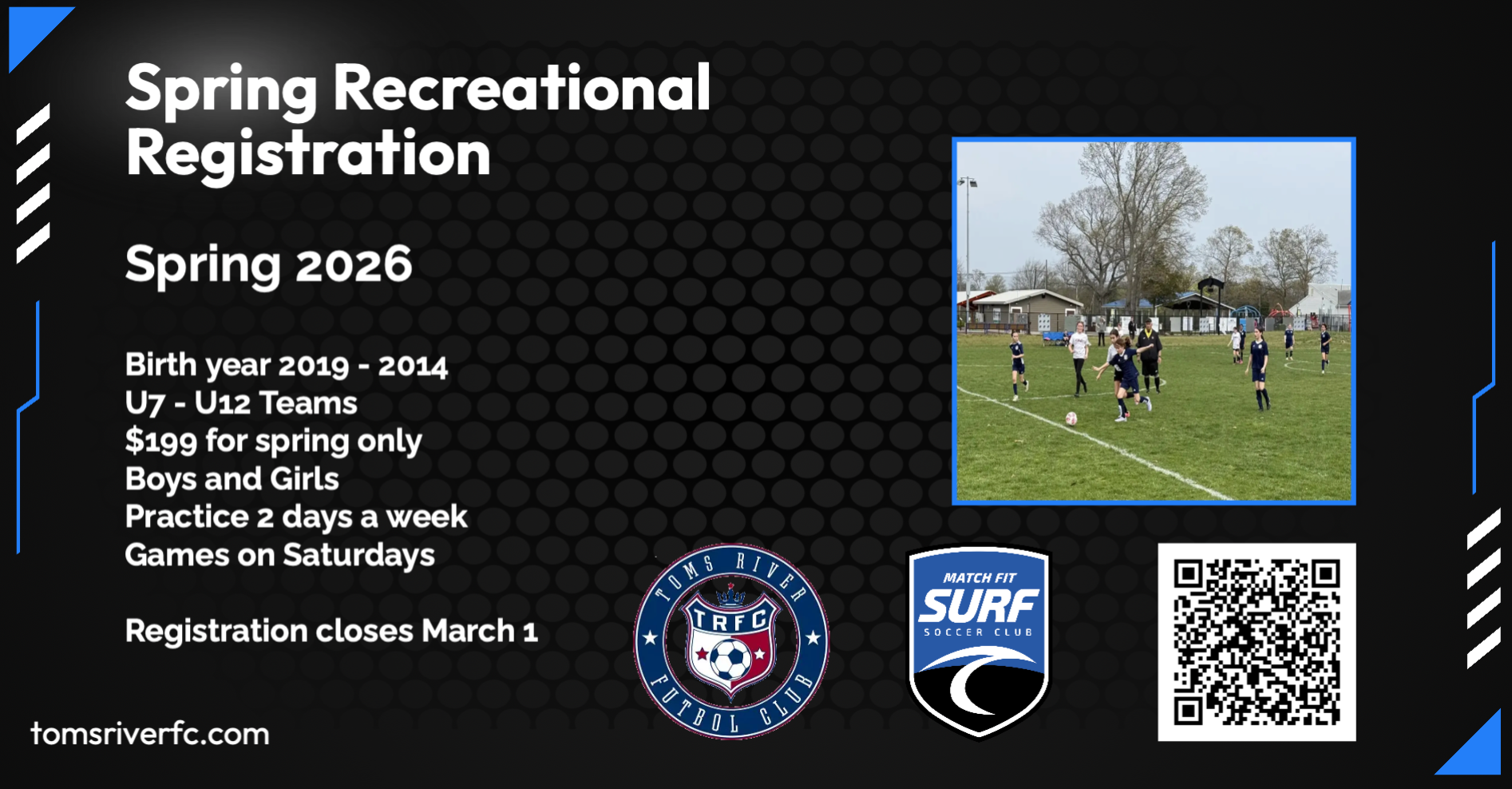 Toms River FC Recreational Training Schedule will be posted by